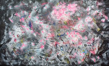 Using acrylics and spray paint, I have created a powerful explosion of emotions. The abstract forms and vibrant pinks symbolize joy and hope, embedded in dynamic, darker layers. This work brings energy and depth to any room and invites you to feel and reflect on emotions. It is an expression of pure vitality and inner harmony.