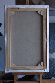In this work I capture vulnerability and intimate contemplation. Using oil for its richness, I blended realism with impressionism to bring to life the texture of skin and folds of fabric. The warm tones in the background contrast with the calming blue of the garment, evoking a feeling of comfort in the face of loneliness. This painting fills any space with thoughtful, emotionally rich energy.