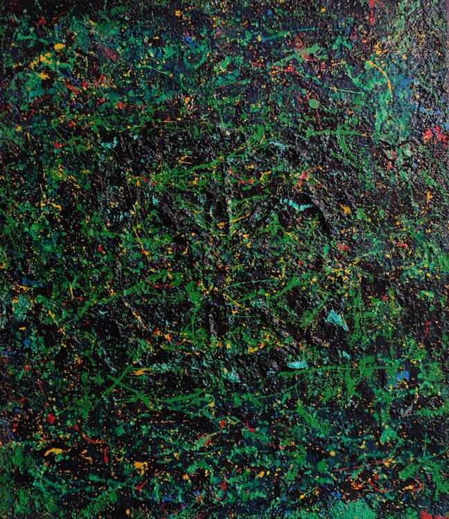 This work is an exploration of vibrant textures and colors against cosmic darkness, reflecting intense emotions and the eternal search for light in the darkness. When creating it, I wanted to capture the chaos and beauty of the universe. Each brushstroke is a dance of star matter, bringing dynamic energy and deep contrast to any space. It is an invitation to dream and get lost in the immensity of the unknown.