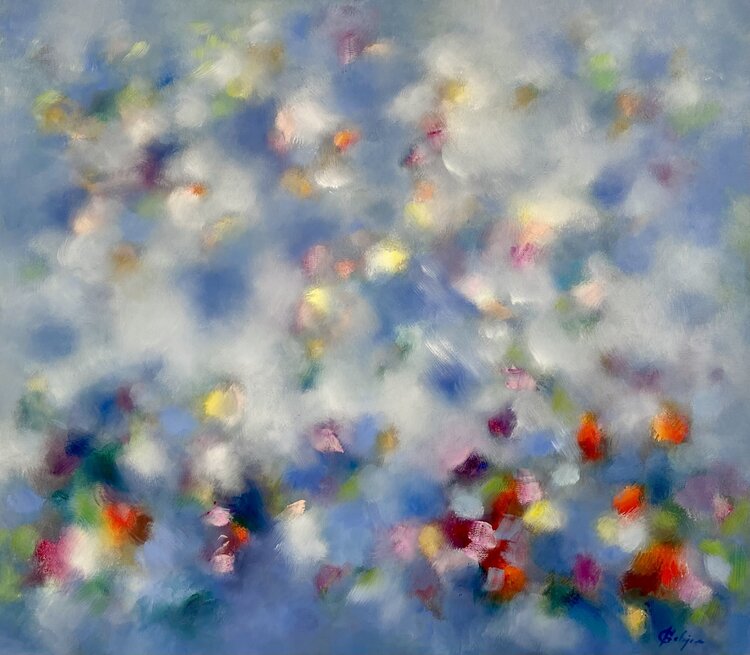 When I painted this work, I didn't have in mind J.S. Bach's beautiful masterpiece, the most famous Badinerie in history. I just wanted to paint something light and not too serious. Composition is based on contrasts of bright colors and almost white fog, on the juxtaposition of soft, blurred and clear, playful brushstrokes. I've tried to capture the fleeting essence of nature's whimsicality. The soft blend of colors and gentle strokes resonate with… a dream-like tranquility, evoking a serene, almost ethereal quality. This piece is an ode to the unseen, the subtle beauty that dances on the periphery of our vision, providing a soothing ambiance and inviting contemplation in any space it graces.
