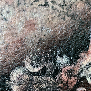 My work is a mix of different pictures/images and paints which I combine on the computer and canvas to create a new image. My favorite subject is the female face. I use pictures of people and old walls, grunge posters and all kinds of other interesting subjects to create a new image again. When the digital part is ready I print the image and start painting over it. I create thick structures and a lot of layers of paint and gel over them. In this… way, I try to make the digital image tangible again. My work is not so much about explanation and concept it is a game and all about the image. I start with no idea in general but by looking at images that interest me and by mixing them, slowly a new image evolves. All works are made on request in any size of preference. Most of these works are a mix of print, paint, grain gel, heavy gel and math/gloss coating. The works are made by hand, individually a bit different in editions of max. 25 pieces.