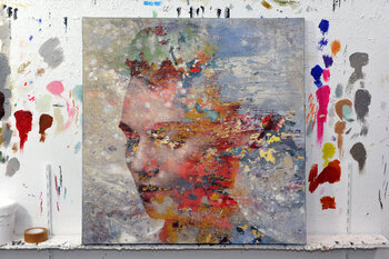Karin Vermeer is an independent artist who has lived and worked in Rotterdam since 2002. Her works are created by digitally combining and editing photographs and paintings into new, original works of art. Vermeer specializes in portraits created by overlaying and blending four to five different faces, of different race and origin, to create a new, non existing person. The digital images are printed and paint is added to achieve the final result: an attempt to make a digital image tangible once again.