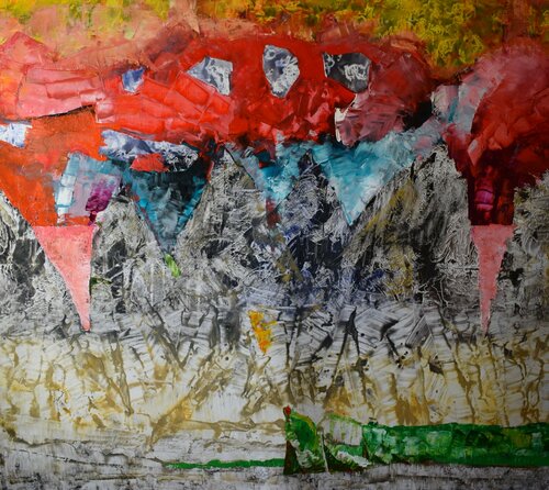 In this oil painting I explore the abstract world of emotions and change. Using bold, dynamic strokes and a palette full of vibrancy, I have created a work that captures the intensity and fickleness of life. The textures and color transitions symbolize the constant change. This work of art will bring an atmosphere of energy and reflection into your home.