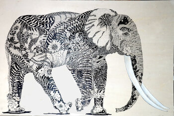 In this piece, Linnea merged the majestic essence of an elephant with intricate patterns, evoking its connection to nature. Linnea loves pen and ink and this elephant is drawin on wood and is unframed but ready to hang.