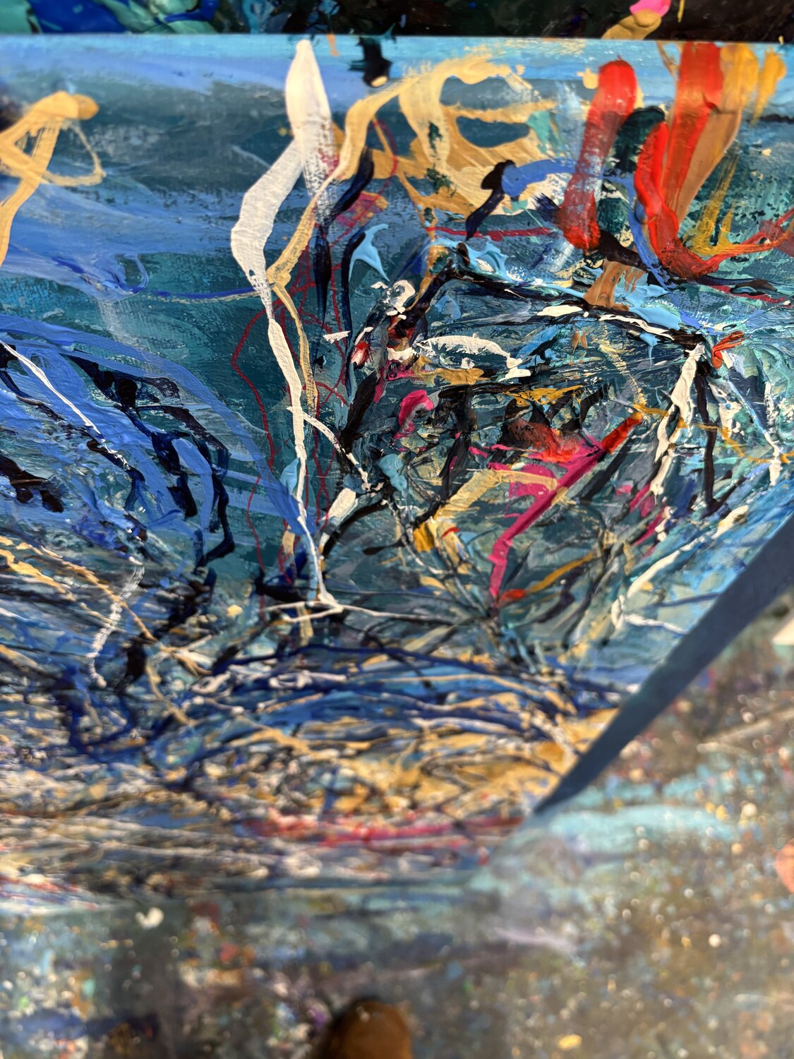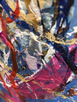 Majka Dombrowicz is a Polish painter and printmaker with a master’s degree in graphic arts from the University of the Arts in Poznań. She employs a signature style of “aesthetic expressionism,” blending multilayered acrylics, printmaking techniques, and bold physical gestures—sometimes painting with her hands or feet—into expressive, abstract compositions. Her work radiates profound emotion, capturing the vibrancy, memories, and intimate experiences of her life, leaving viewers with images that linger poetically in the imagination and soul.