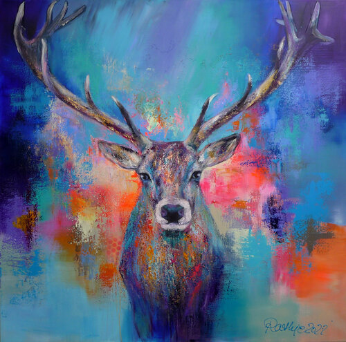 Auf Wunsch wurde für den Kunden anlog zu dem Kunstwerk Alvaar ein Portrait von einem Hirsch erstellt.