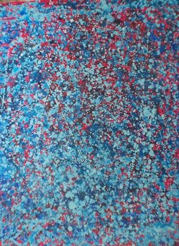 A cascade of colour and memory, Yesterday’s Dreams unfolds in a field of splattered blues, reds, and whites, where rhythm and chance collide. The lighter centre—washed with pale blues and whites—suggests the fragile clarity of a dream upon waking, while the darker edges echo the fading traces of what slips away with time.