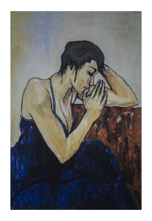 In this piece, I wanted to capture an intimate moment of reflection and vulnerability. The female figure, with her contemplative posture, expresses a profound emotion that we can all feel. I used lithography to give texture and life to the paper, while the dark and warm tones convey both melancholy and hope. This artwork will fill your space with a serene and emotive energy that invites introspection.