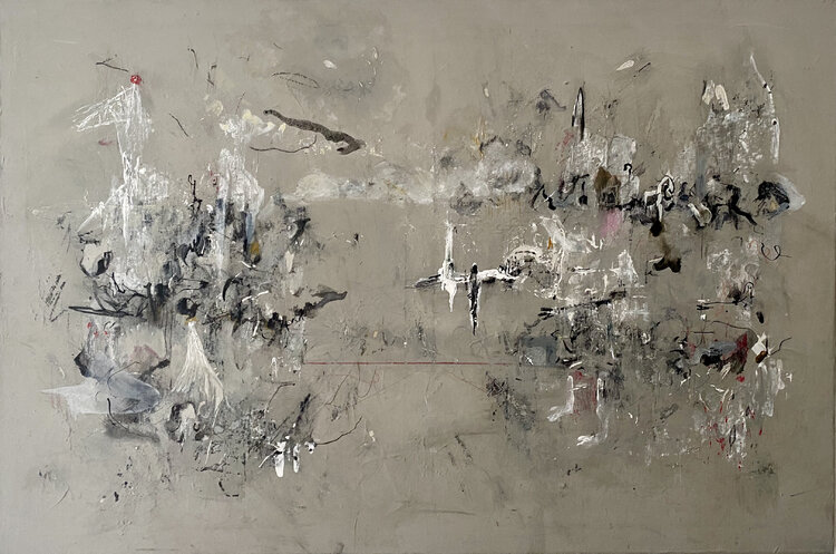 This painting began as something else,but as I painted, I found myself affected by the tragedy in Gaza .The first version became too direct. I believe it’s unethical to use art merely to depict suffering while it’s still happening. We have to speak out .But I wanted to go deeper. So I covered the painting and begin again. I started scratching into the background, allowing fragments of the original piece to resurface. Traces of the original emerged… — for me, they are echoes, scars, martyrs. These scars became the foundation of the new painting.The new surface became a metaphor for the silence of the world: of governments, of the media, of those who try to obscure the truth. Using my usual techniques :scratching, layering gesso, building and obscuring — to create a textured field where presence and absence coexist.Acrylic and soft pastel were added to areas the gesso left uncovered, allowing the painting to evolve through tension: between what is hidden and what insists on being seen.