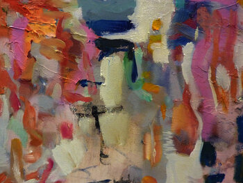 In my work, oil, charcoal and chalk merge to create a vibrant abstraction. Emotions and futurism flow together; it is a tribute to the fleeting beauty of summer. Energy and play of colors fill the room with dynamism and stimulate the imagination. Every look should be a new discovery, an invitation to immerse yourself in memories and dreams.