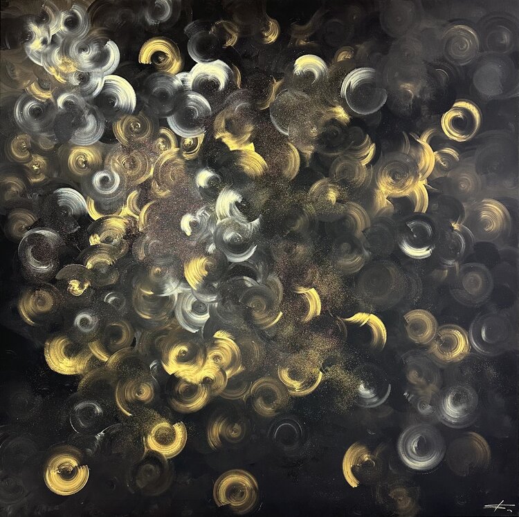 In this acrylic piece, I poured my energy into swirling gold and silver hues against a deep black backdrop, capturing the essence of shimmering night skies. It’s a celebration of light dancing through darkness, evoking feelings of wonder and hope. This vibrant energy will brighten any space, infusing it with warmth and a sense of magical possibility.