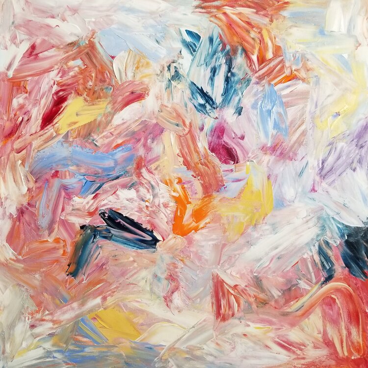Inspired by the bold expressiveness of Willem de Kooning Bursting with energy and movement, Radiant Awakening is a vibrant fusion of color and form, where fiery oranges, deep blues, and luscious reds swirl together in a dance of transformation. Figures and faces emerge and recede within the expressive brushstrokes, hinting at the unseen forces within nature and the subconscious. Is it the first light of dawn ablaze, or a hidden world awakening within… the canvas? This piece invites the viewer into a realm where color pulses with life, mystery, and endless possibilities. Can be hung on any rotation, have fun with it !
