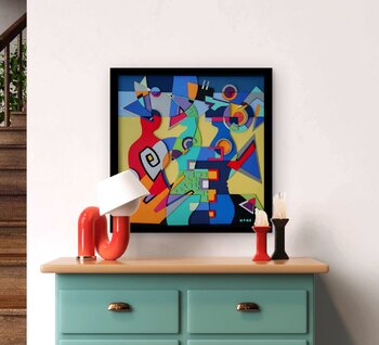 Vince "MONK" Sangiorgio primarily works with wood and acrylic, having trained as a painter and restorer and gained experience in both public and private contexts. His techniques favor inlay, drawing inspiration from Synthetic Cubism and the second Italian Futurism, with bold colors and concise, linear forms. Through his works, he conveys lightness, irony, and a profound exploration of childhood innocence, inviting the viewer to rediscover the purity and playfulness of life.