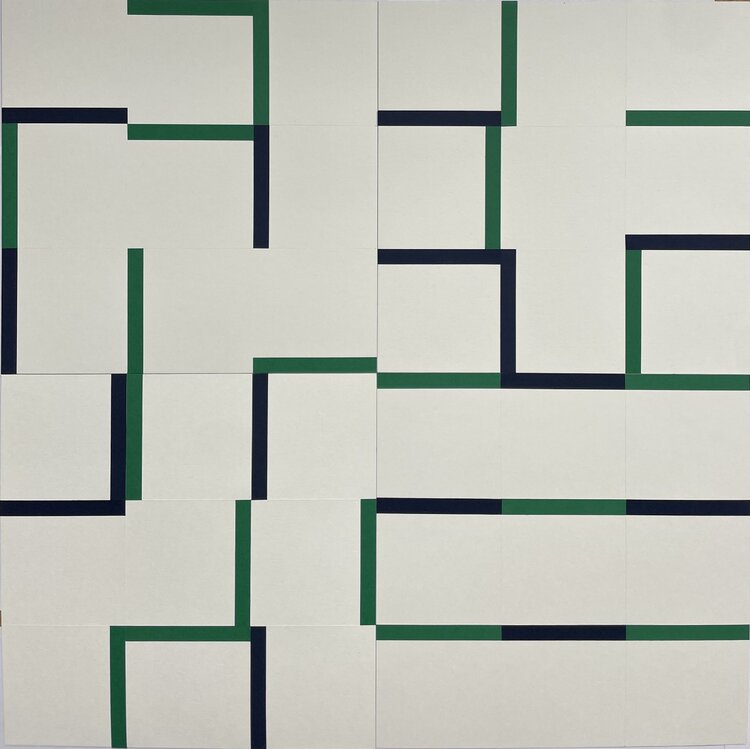 “Entropy is not decay - it’s the reorganization of meaning.” Natalia Pacyna - NAPA Originally from Poland and now based in Germany, NAPA explores the balance between order and disintegration through collage. Collage has become her primary language - a medium suited to expressing the paradox of entropy. Her modular, square-format works are not fixed images but dynamic systems that can be rotated, recomposed, and endlessly reinterpreted. Each fragment of geometry contributes to a shifting whole, where structure dissolves into rhythm and chaos crystallizes into harmony. A graduate of the Academy of Fine Arts in Wrocław, NAPA combines the precision of design with the openness of abstraction, inviting the viewer to see entropy not as decay but as transformation.