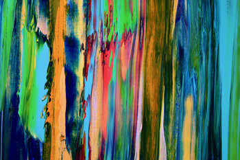 Anyone who had been to the botanical gardens in Hawaii remembers the exotic multi-colored Eucalyptus tree bark! It is unreal and actually looks like an abstract painting! This work is textured, layered and contemplative artwork with contrast and organic shapes. Most of the colors are the result of color blending using acrylic mediums, palette knife and acrylic paint.
