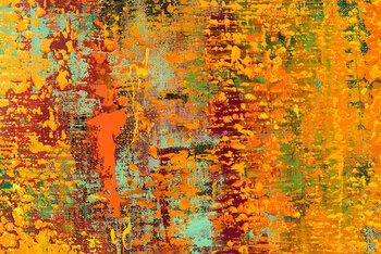Large abstract oil painting on stretched canvas, with dominate yellow.