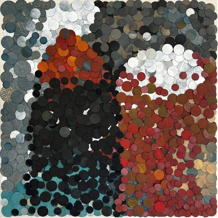 Oscar Baccilieri, born in 1965 in Reggio Emilia, develops artistically through different media such as canvas, cashmere, beeswax, marble, blotting paper, and copper, transforming the material into an intense exercise of creativity and aesthetics. He works with an enigmatic, playful and ludic aesthetic, using collage, watercolor, and acid painting techniques, mixing figurative and abstract aspects in his works. With his works, Baccilieri reveals a world rich in interpretation and meaning, inviting the viewer to look with curiosity and to reflect on our daily reality.