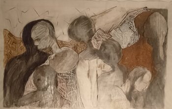 Pascal Maffre, a self-taught painter since the 1980s, works primarily with mixed media. He skillfully blends the figurative and the abstract, with a free, spontaneous, and sometimes raw style, drawing on the archaic. His work, centered on the human figure but open to nature and trees, conveys a profound poetry and the emotion of metamorphosis, capturing the ever-changing beauty of the world.