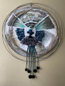 I crafted this textile artwork using cotton and wool, evoking abstract and symbolic styles to instill a sense of transcendence and emotion. The moth, central in the piece, symbolizes transformation and the beauty of evolving. Encircled by a metallic hoop, it gives a modern touch while emphasizing the cyclical nature of life. This piece brings a calming yet thought-provoking energy into any space, perfect for those who appreciate the depth of fine… art blended with the comfort of textile mediums.
