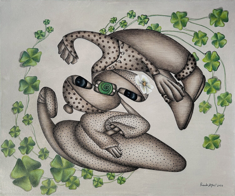 Randa Hijazi is an artist based in Canada whose paintings have been exhibited nationally, as well as in the United Arab Emirates, Lebanon, and France. Through her works, she endeavors to shed light on many humanitarian issues, as well as express the issues of injustice, poverty, and elimination in a harmonious manner. In her artistic process, Hijazi most often employs acrylics, collage, and pencils on canvas or paper.