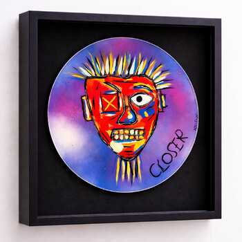 With this vibrant work, I expressed a raw and incandescent energy, blending anger and urgency. The vinyl record has been given a second life. It is covered in color. Each record is named after a cult song. It's up to you to find them.