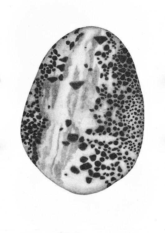 Séverine Bourgeois primarily uses India ink, graphite, and lead pencil, drawing inspiration from her unique visual perception. Her traditional techniques explore figuration and abstraction, playing with stippling and black and white to distort perspective and manipulate boundaries. Through her works, she conveys a profound duality, imbued with poetry, mystery, and melancholy, seeking to unsettle and overwhelm with the power of her contrasts and paradoxes.
