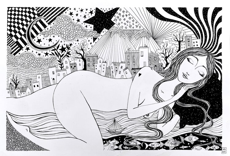 Sara Sgrò, with a solid background in Florence and Paris, uses watercolors and acrylics to transform profound emotions and moods into art. Her figurative technique, tinged with dreaminess and introspection, expresses itself through a fairytale and peaceful style, where the central theme remains love in all its nuances. Her works convey a meditative and captivating beauty, inspiring in the viewer a sweet nostalgia and a sense of peace and hope.