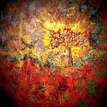 Every stroke of this acrylic and gold leaf composition was fueled by a desire to capture the "glow" we feel when we truly connect with the world around us. It mirrors the cycle of life—the warmth of the sun, the rush of the wind, and the deep quiet of the soil.