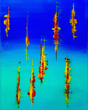 This work represents the emotional flow of our lives, a reflection of the inner turmoil. I chose bright shades of blue to evoke serenity and hope, while the splashes of red and yellow symbolize the energy and passion we carry within us. This canvas wants to be an open window on the depths of the human soul, inviting those who observe it to suspend themselves in a moment of reflection and emotional connection. By bringing this work into your home,… you will bring with you a piece of sky, full of energy and deep meditation.