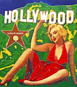 Marilyn In Red Goes To Hollywood (large unique painting)