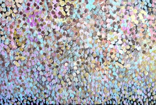 Theo Papathomas is an Australian artist whose paintings have been exhibited nationally. His current landscape series features vibrant petals and confetti, yet he also favors creating in an abstract manner. Papathomas most often creates using oils with a palette knife, as this technique allows him to produce engaging three-dimensional textures. In addition, he also pours paint directly onto the canvas, to obtain texturized backgrounds.
