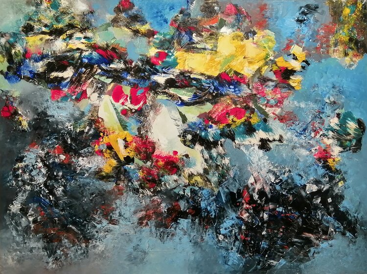 Tomas Cózar is a passionate, self-taught painter with a deep love of art since childhood. His works explore mixed media, combining gestural abstraction and rich chromatic experimentation. He seeks to provoke a direct connection in the viewer with the emotion and energy of the present moment.