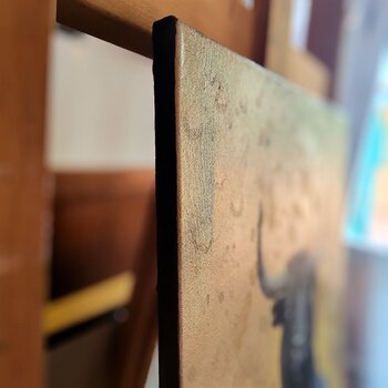 I used oil and gold to create a vibrant contrast that fills the space with energy and… nobility. I wanted this painting to inspire courage and determination, bringing an imposing and vibrant presence to any space where it's displayed.