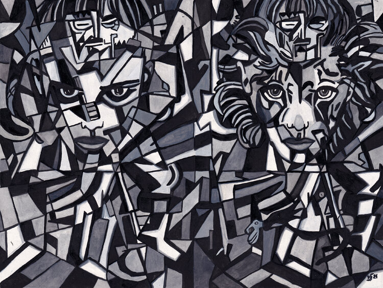 I created this watercolor painting to depict the inner conflict and the connection between strength and vulnerability. Through surreal forms and monochrome tones, I wanted to create a dynamic tension that captivates the viewer and prompts reflection. This work brings energy and depth to any room; it speaks of human complexity and the search for balance.