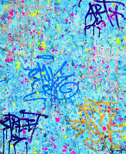 Inspired by popular culture, he pays homage to iconic characters such as Disney, Marvel, and cinema, while integrating techniques of graffiti, oil painting, and Posca markers. Bardou mixes figurative and abstract elements, creating striking contrasts between realistic subjects and colorful and chaotic backgrounds. His influences, such as Banksy, are reflected in an engaged and urban art, dealing with modernity, human nature and the environment.