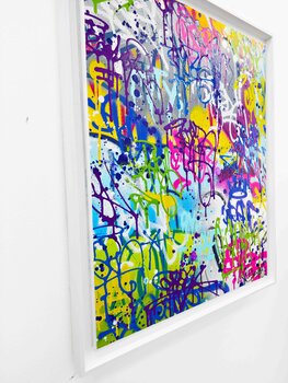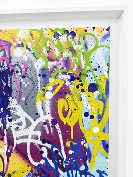 Inspired by popular culture, he pays homage to iconic characters such as Disney, Marvel, and cinema, while integrating techniques of graffiti, oil painting, and Posca markers. Bardou mixes figurative and abstract elements, creating striking contrasts between realistic subjects and colorful and chaotic backgrounds. His influences, such as Banksy, are reflected in an engaged and urban art, dealing with modernity, human nature and the environment.