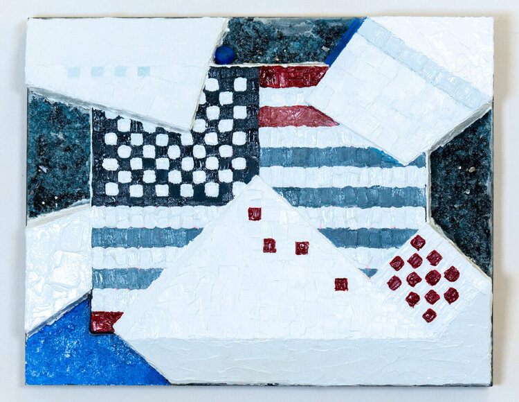 Oil, Acrylic, Crushed Glass medium, & Steel Ball on Board & Canvas Mounted on Wood Panel