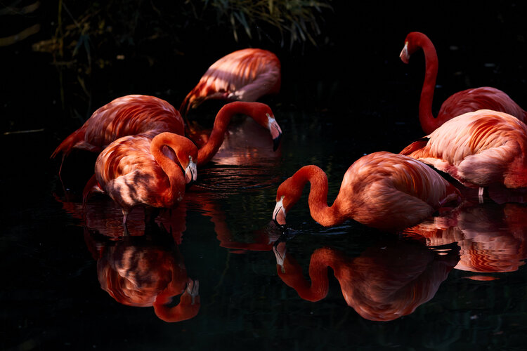 Tomé esta imagen porque quería capturar la elegancia geométrica que emerge del aparente caos de un grupo de flamencos buscando alimento.