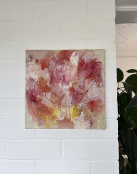 En esta obra, volqué mi corazón en una vibrante danza de rojos, rosas y amarillos. Utilizando acuarela, carboncillo, tinta y pigmentos, capturé la energía ardiente y tierna de las complejas emociones del amor. Esta pintura irradia calidez y pasión, invitando a que tu espacio cobre vida con movimiento expresivo y susurros íntimos ocultos en sus capas abstractas. Es una celebración de sentimientos puros y sin filtros.