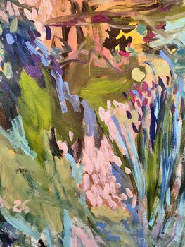 Sus pinturas a menudo evocan temas relacionados con la naturaleza, la introspección y las emociones humanas. Juega con la luz y la sombra para crear atmósferas únicas.