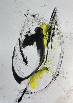 En este trabajo busqué capturar energía y emoción crudas a través de la abstracción y el expresionismo. Con acrílico y tinta sobre papel, creo un diálogo visual donde el negro profundo y el amarillo vibrante bailan juntos. Estos colores y formas impredecibles invitan a la contemplación, evocando pasión y dinamismo que energizarán tu espacio.