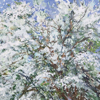 En mi trabajo me inspiré en la vigorizante frescura de la primavera. Vibrantes colores acrílicos y pasteles fluyen juntos en estilos expresivos e impresionistas para formar la copa de un árbol en flor. La libertad de las pinceladas semiabstractas transmite vitalidad y crecimiento. Esta representación tiene como objetivo crear confianza y una conexión con la naturaleza en cualquier habitación que adorne.