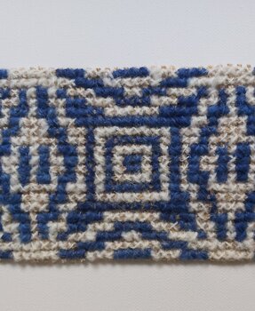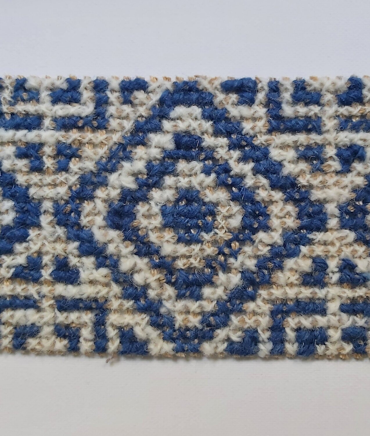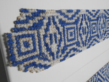 En esta obra textil, quise capturar la esencia del tiempo a través de patrones geométricos fragmentados, como vestigios de un pasado redescubierto. La lana bordada crea una rica textura que evoca tanto fuerza como fragilidad. Cuélgala… y siente la energía vibrante de una historia que abarca lo moderno y lo antiguo, invitando a la contemplación.