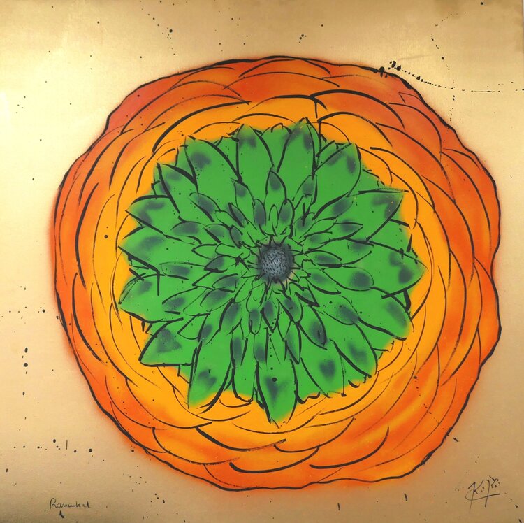 En esta obra, utilicé pintura en aerosol y delicadas líneas de acrílico negro para dar vida a una pequeña flor, creando una imagen vibrante y duradera que irradia fuerza y calidez. Los luminosos tonos naranja y verde simbolizan el crecimiento y la energía, generando una atmósfera positiva que llena los espacios de vitalidad y alegría. Esta pintura trae la esencia pura de la naturaleza directamente a tu hogar.