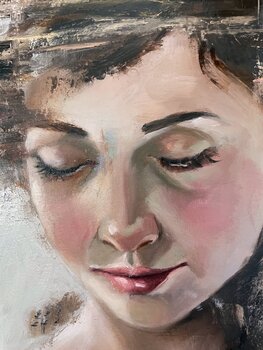 Me encantan las técnicas clásicas como el óleo sobre lienzo y el pastel, pero las utilizo para expresar emociones contemporáneas: fragilidad, fuerza, identidad, investigación. Pinto lo que no se dice, lo que queda en los ojos cerrados o se disuelve en un matiz.
