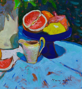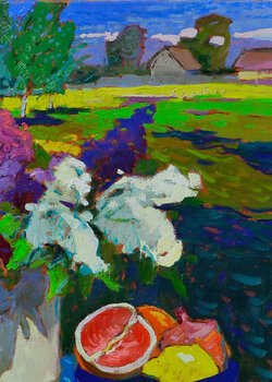 Dans cette œuvre, j'ai insufflé à chaque coup de pinceau ma passion pour la vie vibrante et la beauté éphémère de la nature. Les couleurs vives et les formes expressives capturent une énergie joyeuse, invitant à ressentir la chaleur du soleil et le parfum frais des fleurs. Ce tableau respire le calme et le bonheur, prêt à illuminer n'importe quel espace de son esprit vibrant et sincère. C'est ma célébration des plaisirs simples, vivifiés par une… émotion intense.