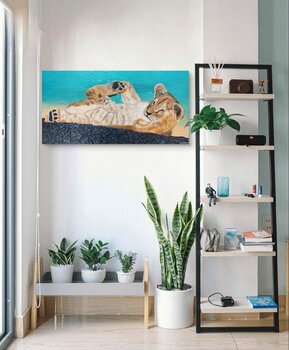 Dans ce tableau, j'ai capturé un moment de tendresse, de curiosité et d'espièglerie juvéniles à travers la pose détendue du lionceau. À l'acrylique, j'ai mêlé réalisme et touche impressionniste pour évoquer chaleur et innocence. Cette œuvre apporte une énergie joyeuse et sereine à tout espace, nous invitant à savourer ces instants d'émerveillement insouciant et de connexion avec la beauté de la nature.