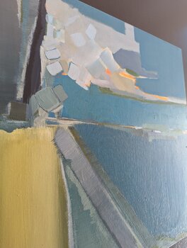Derrière ce paysage semi-abstrait, j'ai cherché à transmettre une sensation de voyage et de poésie. L'affectif prend le dessus sur le réalisme, laisse libre cours à l'interprétation du regard et donne sa place à la sensibilité du spectateur.