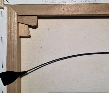 Les côtés de l'œuvre sont également peints ; elle n'a pas besoin d'être encadrée et est prête à être accrochée. Elle est signée au recto. Le titre et la date figurent au verso.