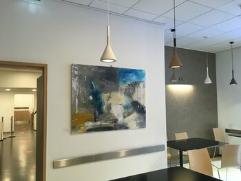 Un amateur d'art, achat effectué en juin 2024: "Averse de bleus", Acrylique sur Toile , 45,7x35in